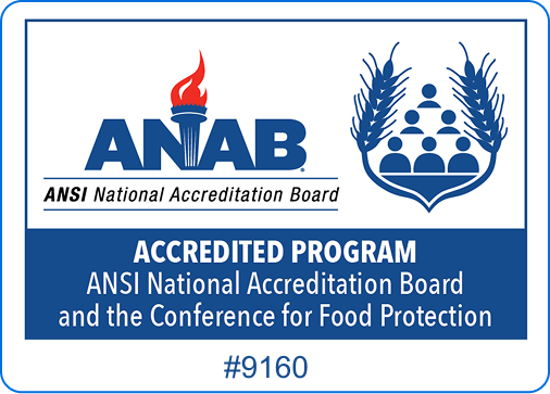 Please click to view the nationally recognized ANSI accreditation for Food Protection Manager.